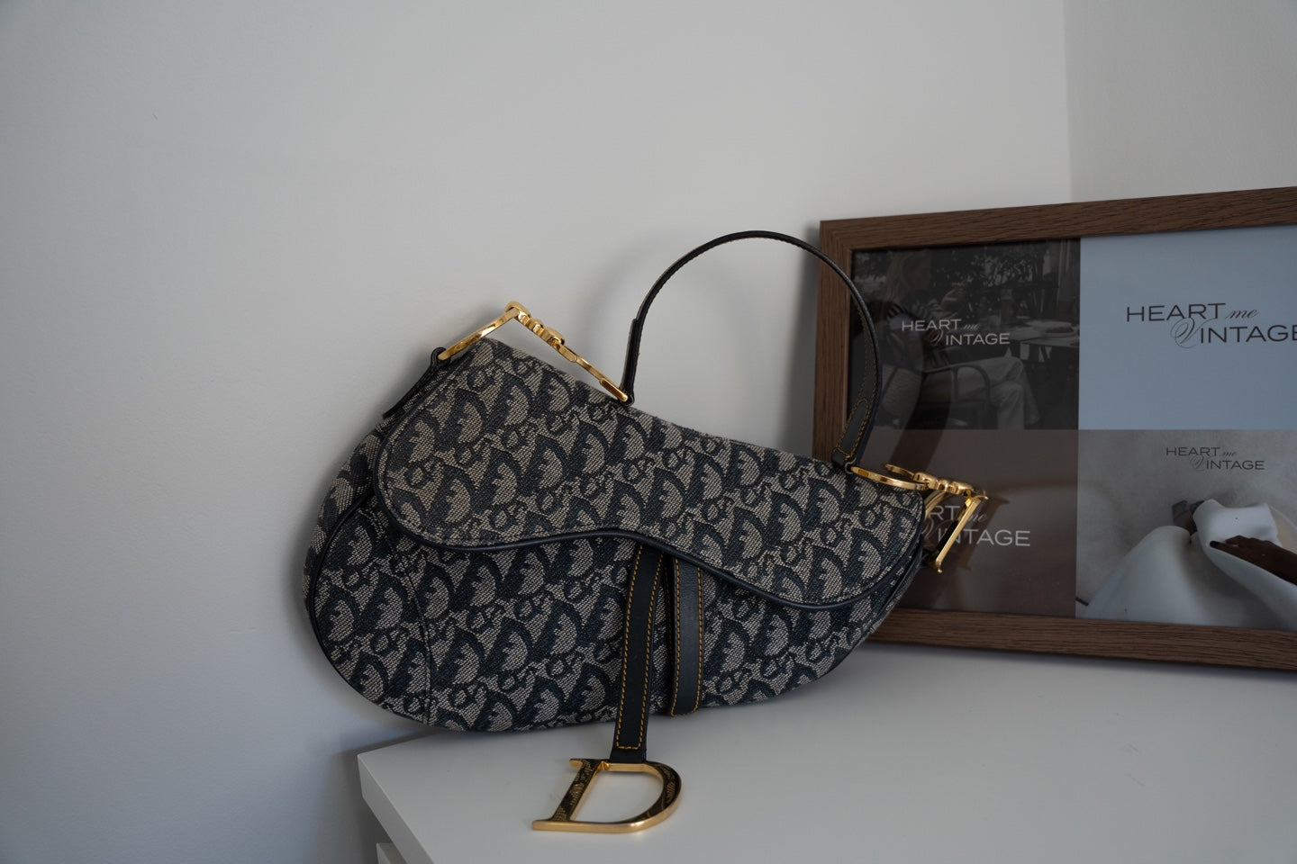 Christian Dior Vintage Saddle Bag in Blue Oblique Pattern
